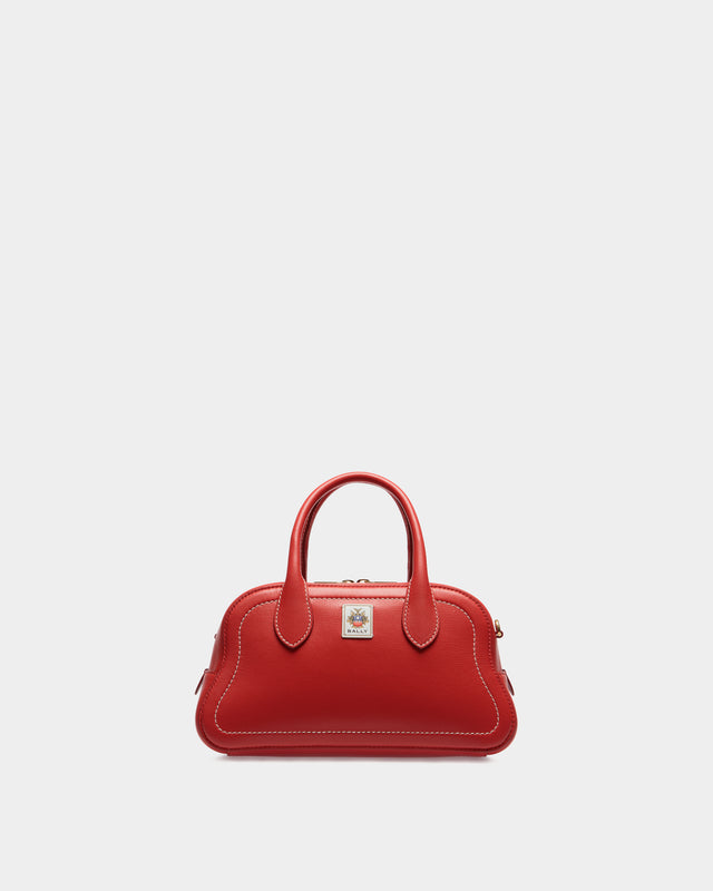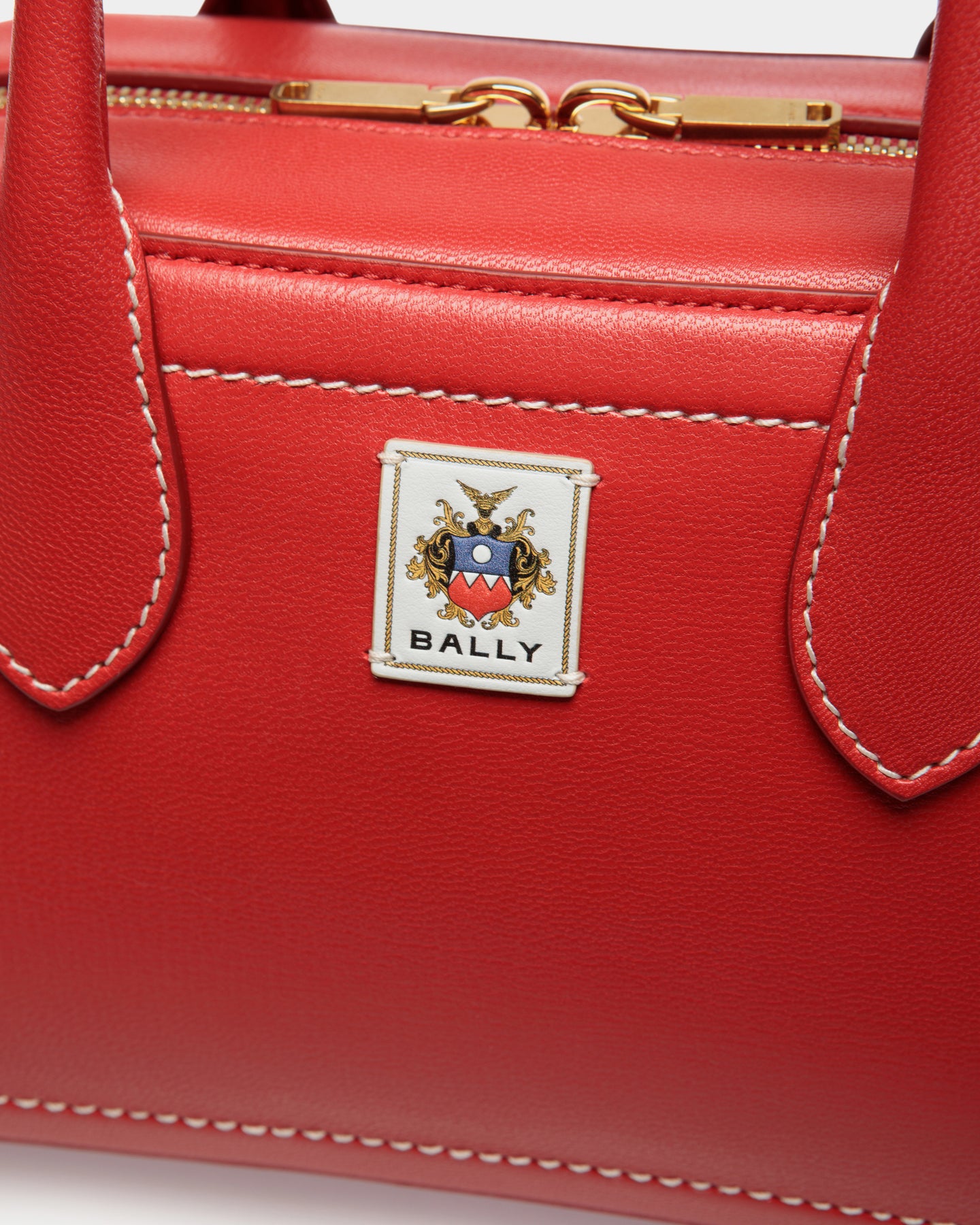 تتميز حقيبة Unda ذات المقبض العلوي بمقبض علوي بتصميم شبه منحرف مستدير ناعم من جلد الأطفال الأحمر مع لمسة نهائية محببة. تزين رقعة شعار Bally Crest من الجلد الجزء الأمامي.