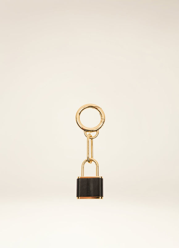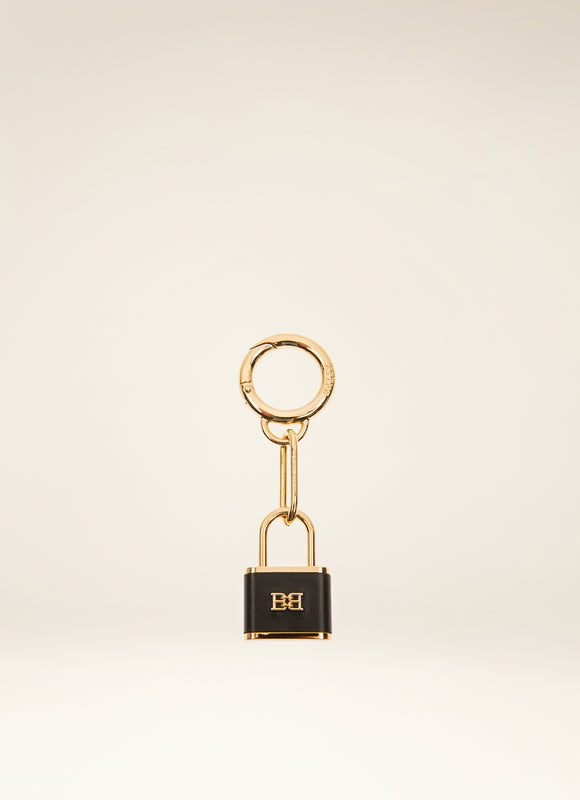 حامل مفاتيح أنيق مع خطاف سريع من المعدن باللون الذهبي، قفل B-Chain مصنوع من جلد أسود ويتميز بتفاصيل B-Chain المميزة.