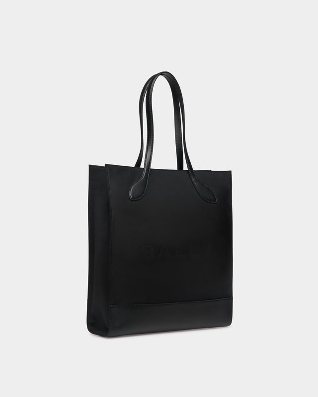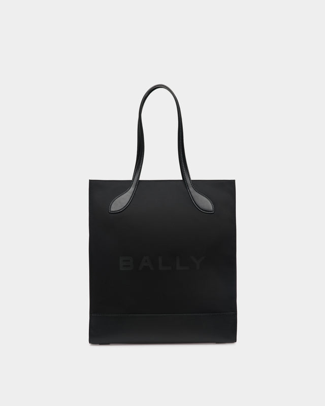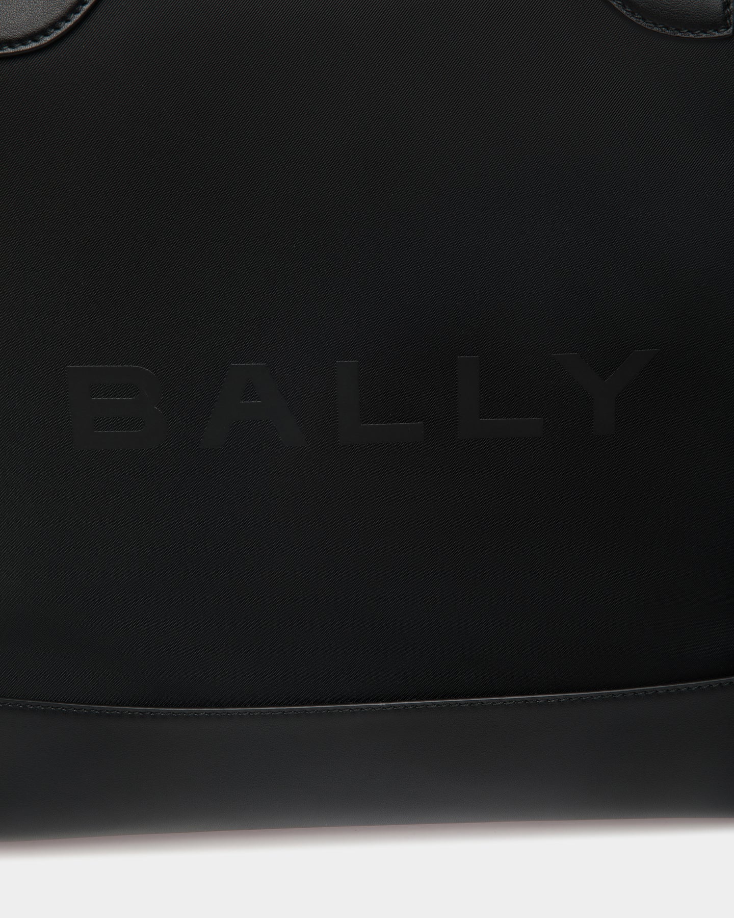 حقيبة بار توت بتصميمها المستطيل الكلاسيكي، مصنوعة بدقة من النايلون الأسود. مقابضها الجلدية المبطنة تتيح لك حملها باليد أو على الكتف.