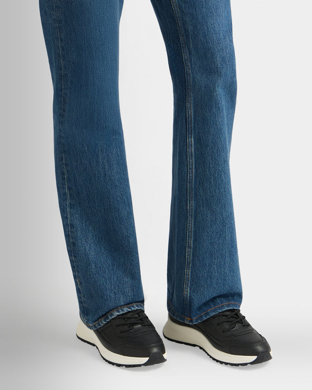 حذاء أوتلاين الرياضي المصنوع من الجلد الأسود يتميز بلمسة نهائية محببة ونعل سميك وخفيف الوزن للجري يوفر ثباتًا مثاليًا على جميع أنواع التضاريس. شعار بالي المنقوش على اللسان ونقشة الشريط الرقيقة على الجانب تُضفي لمسةً أيقونية. أربطة مستديرة تُكمل المظهر.