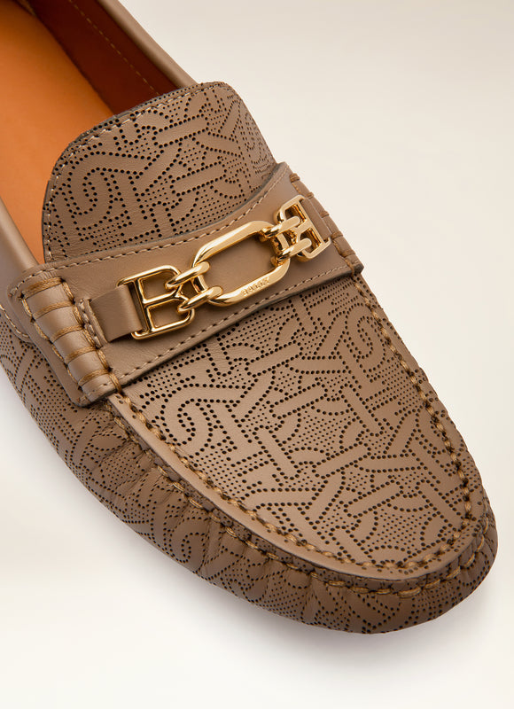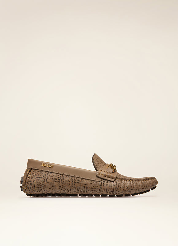 يقدم حذاء لوكس درايفر، المصمم بلمسات عصرية لأحذية القيادة، تفاصيل مميزة مثل المقابض المطاطية المستوحاة من رقاقات الثلج. مصنوع من جلد بني داكن بنقش حرف B أحادي اللون ، مصنوع من خلال ثقوب دقيقة، ويأتي طراز ليزي مع لمسات نهائية ذهبية عتيقة رقيقة، مثل سلسلة حرف B على الجزء العلوي وشعار بالي على الجانب.