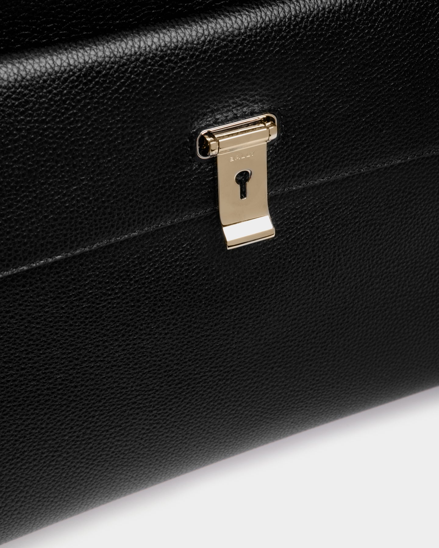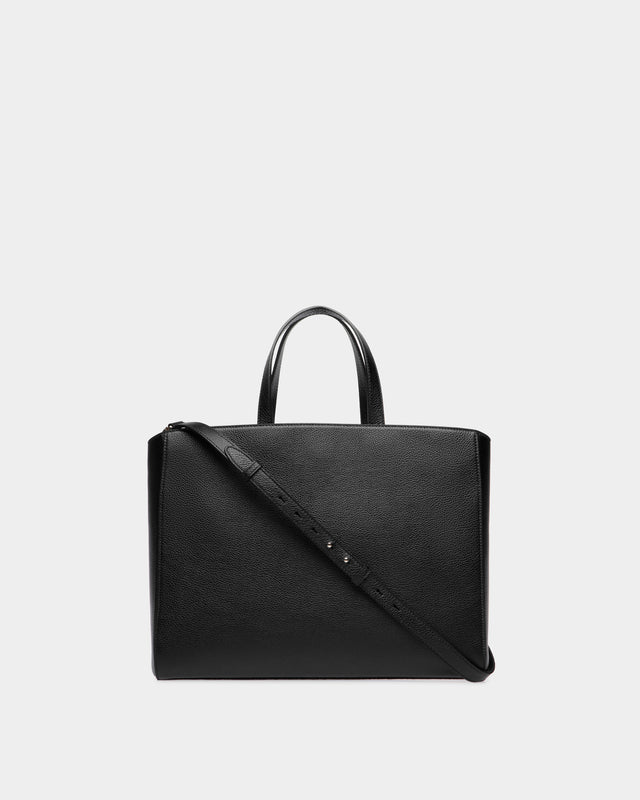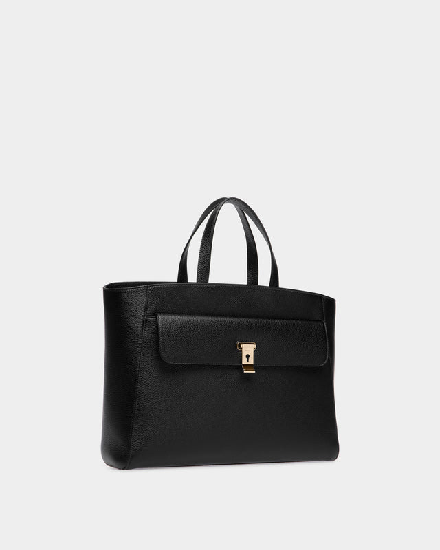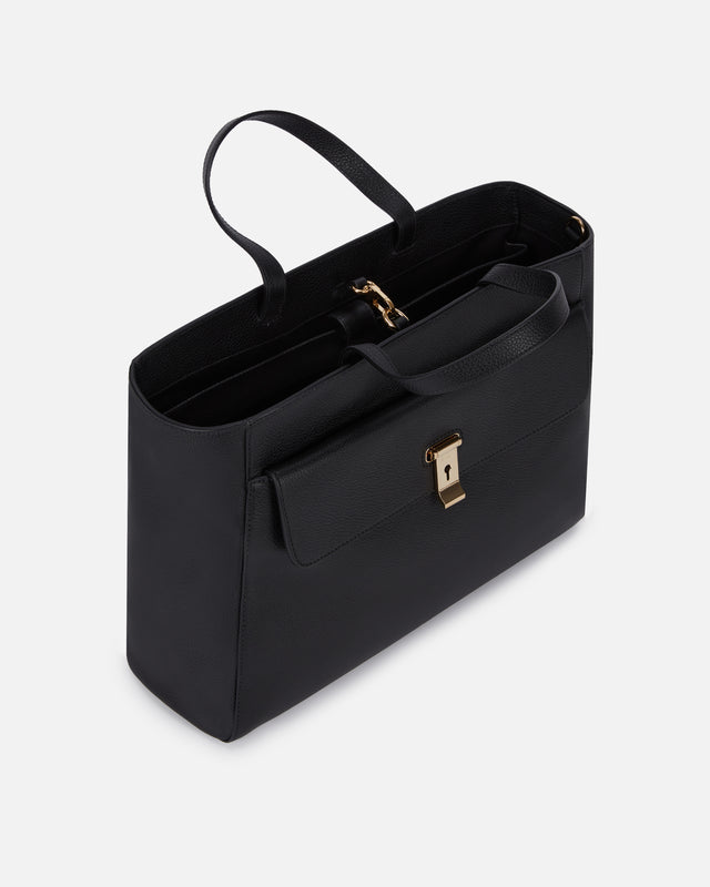 حقيبة توت Lock Me من الجلد الأسود المحبب