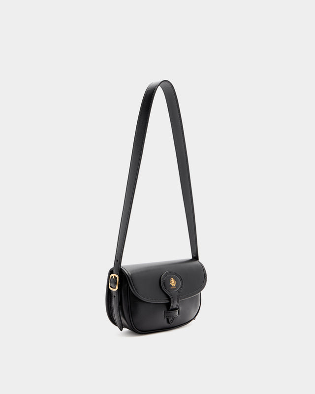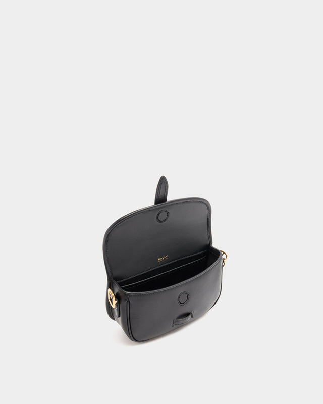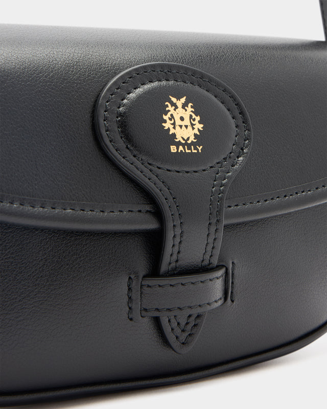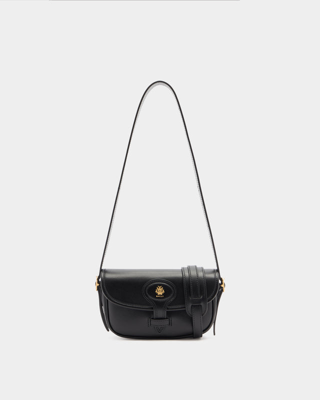 This Beckett minibag in black leather has a compact silhouette embellished by a gold-tone foil Bally Crest on the flap closure.... A choice between two straps offers crossbody and shoulder portability.
