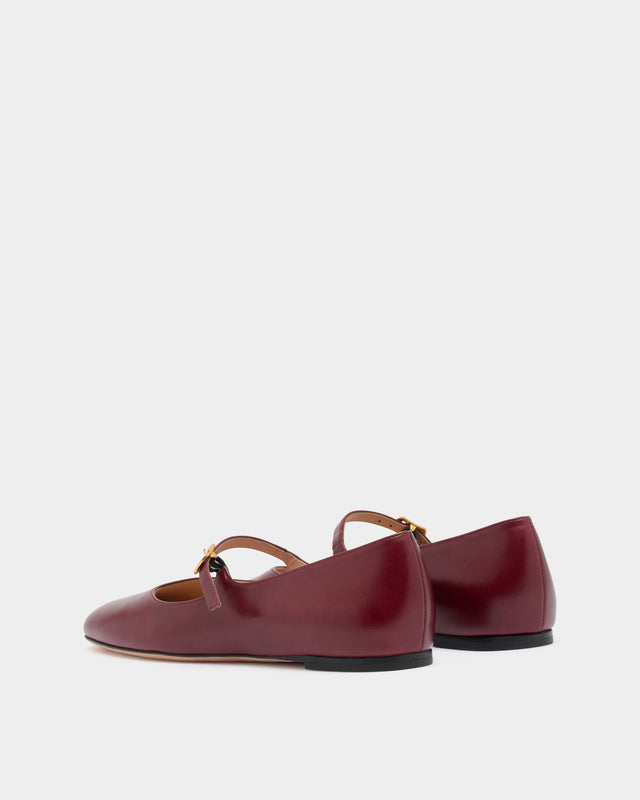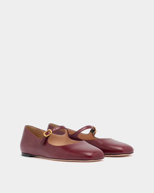 In Andorra-hue calfskin, this square-toe Ballyrina flat is a simple yet elegant expression of Bally craftsmanship and heritage. ...A Mary Jane strap extends across the top, secured by a metal buckle inspired by hardware from the Bally archives.