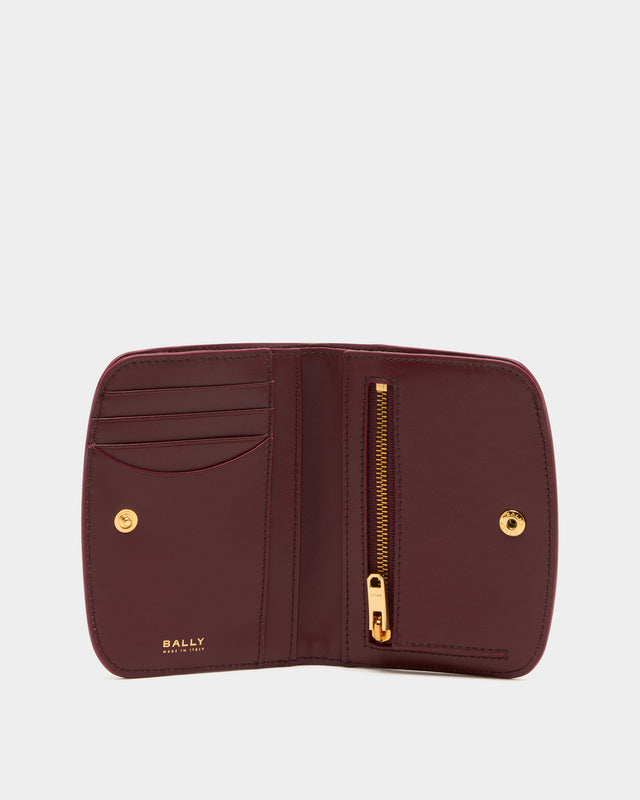 In Andorra calfskin, this Deco wallet is embellished by a simple metal plaque detailed with three engraved lines that recall the Bally Ribbon....On the inside, multiple compartments ensure seamless organization for cash, coins and cards.