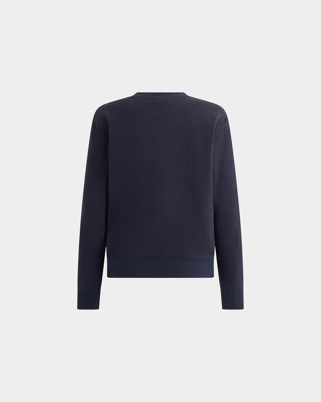 The front of this essential navy blue cotton crewneck sweatshirt is elevated by a red Ballyrina print on the left chest.