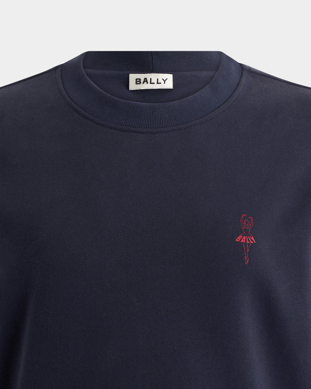 Crewneck Sweatshirt in Navy Blue Cotton With a Ballyrina