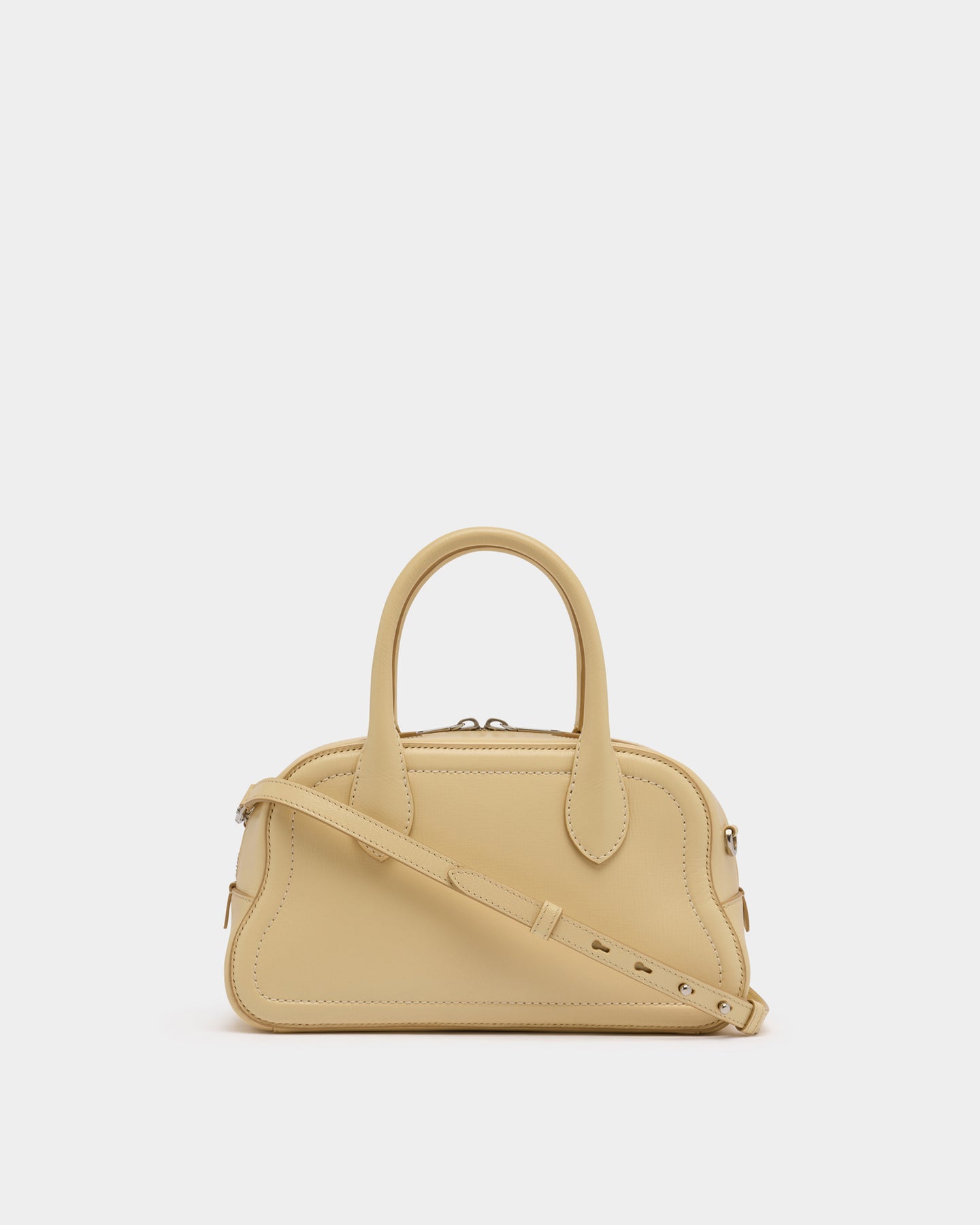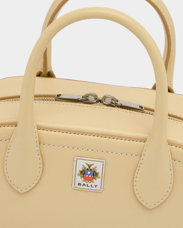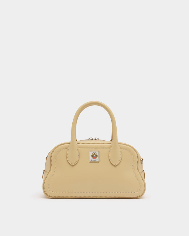 The Unda top handle bag has a softly rounded trapezoid silhouette in Ginger kidskin with a grained finish. A Bally Crest patch in ...leather embellishes the front.